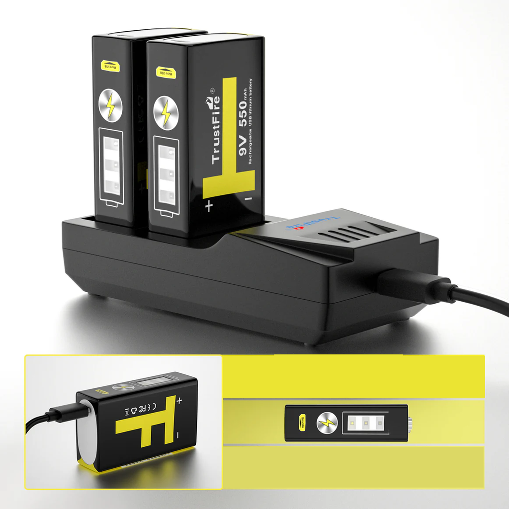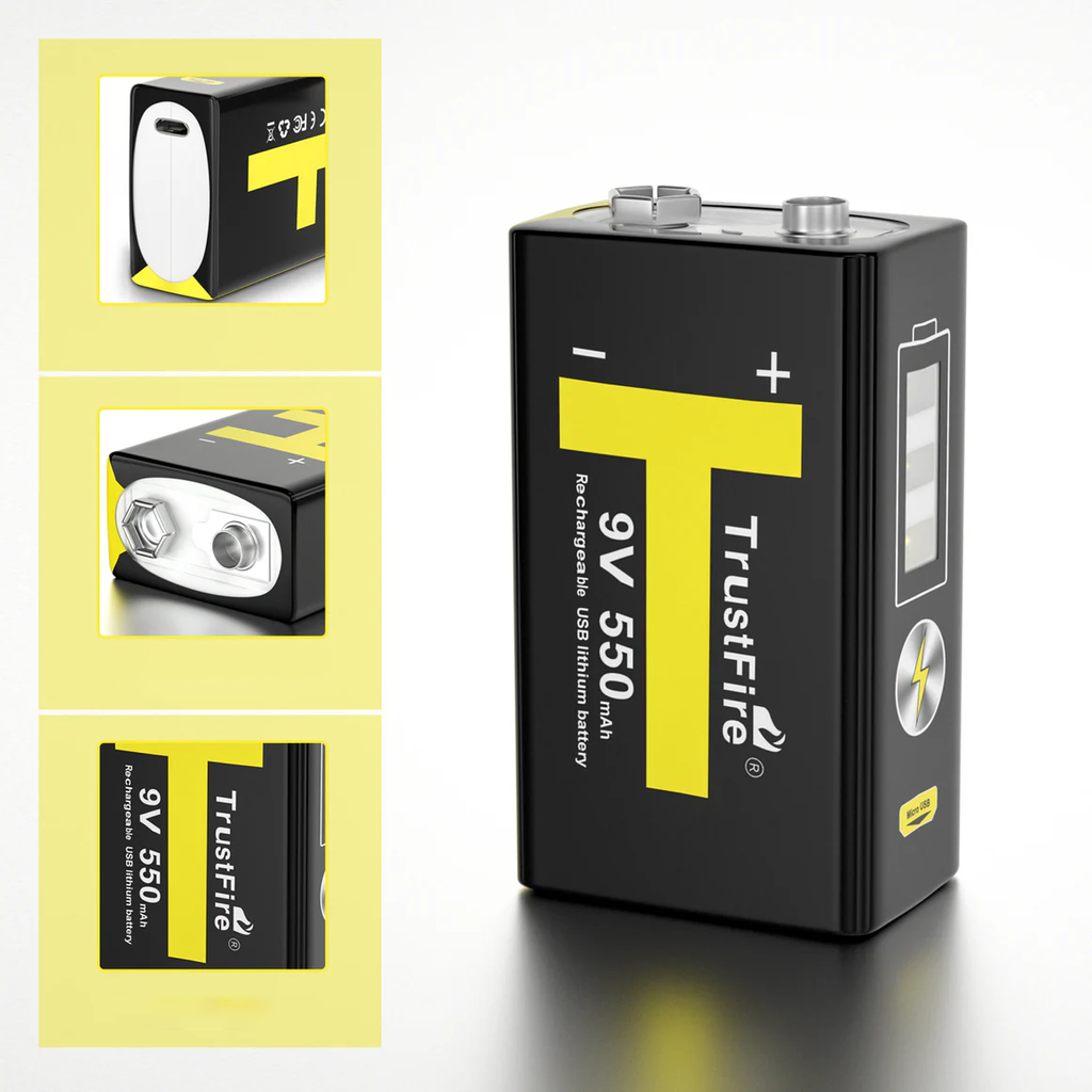 Trustfire Rechargeable 9V 550mAh Lithium-ion battery with micro USB charge Port