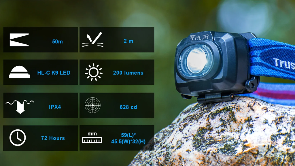 HL3R is a USB rechargeable headlamp,the brightness covers a range of 5~200 lumens,Compact size headlamp making it most practicaland useful in our life