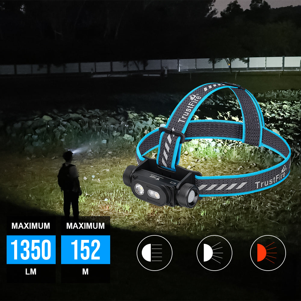 Selling point: Four-in-one function of spotlight + floodlight + red light + sos, higher lumen than H5R (H5R maximum 600lm, H6R maximum 1350 lumens)