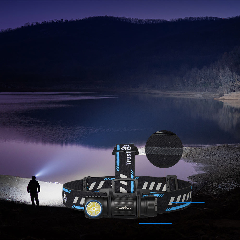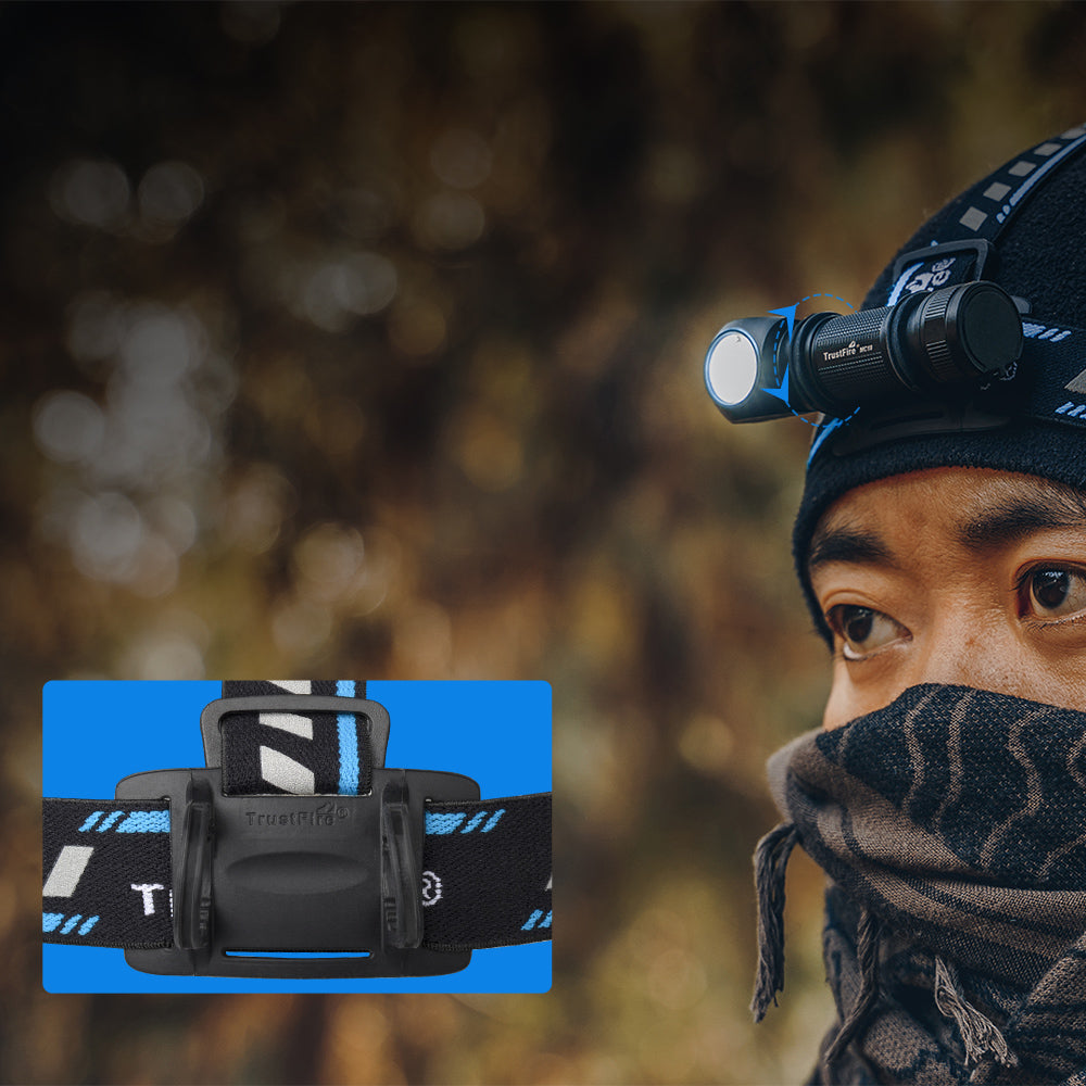 With the new headlamp strap, while having a reflective strip andsweat guide, the closed headlamp strap will not slip off due toexternal forces, making it safer and more secure.