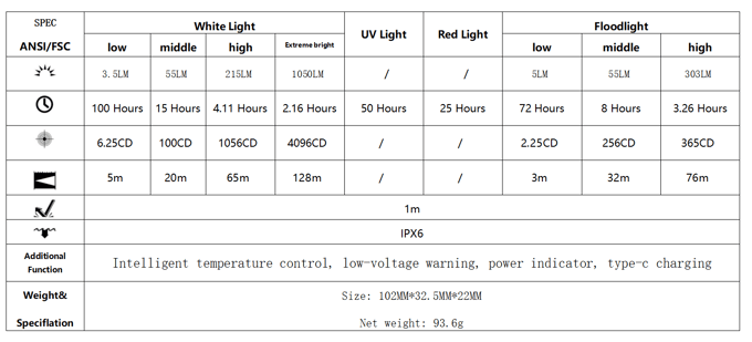 Features: High brightness 1050 lumens cold white, CRI95 high color rendering index warm white small desk lamp design, 0.6MW green laser, UV/red light Four-in-one multifunctional EDC, streamlined design, tail magnetic suction, TYPE-C charging, IPX6 waterproof, multiple shell colors (black, navy blue, gray titanium, desert yellow)
