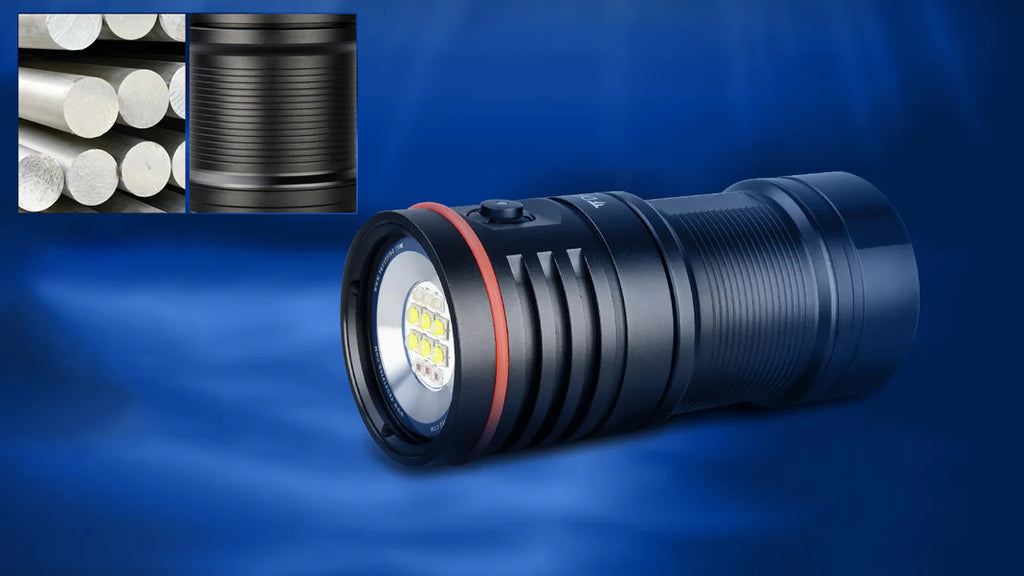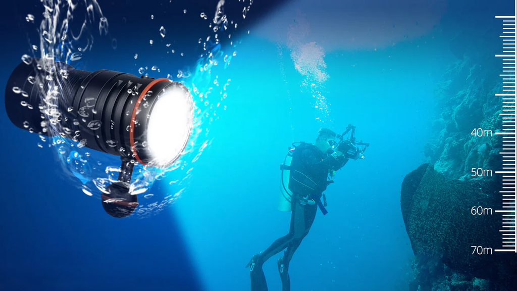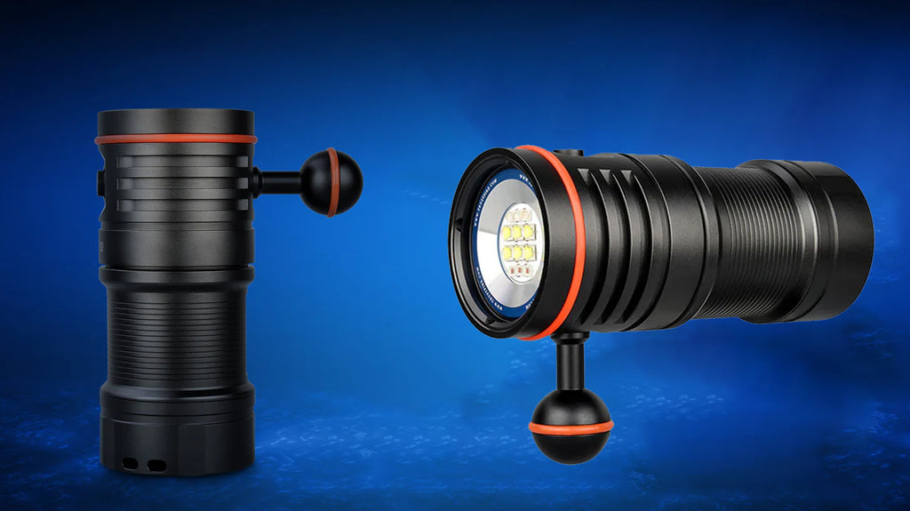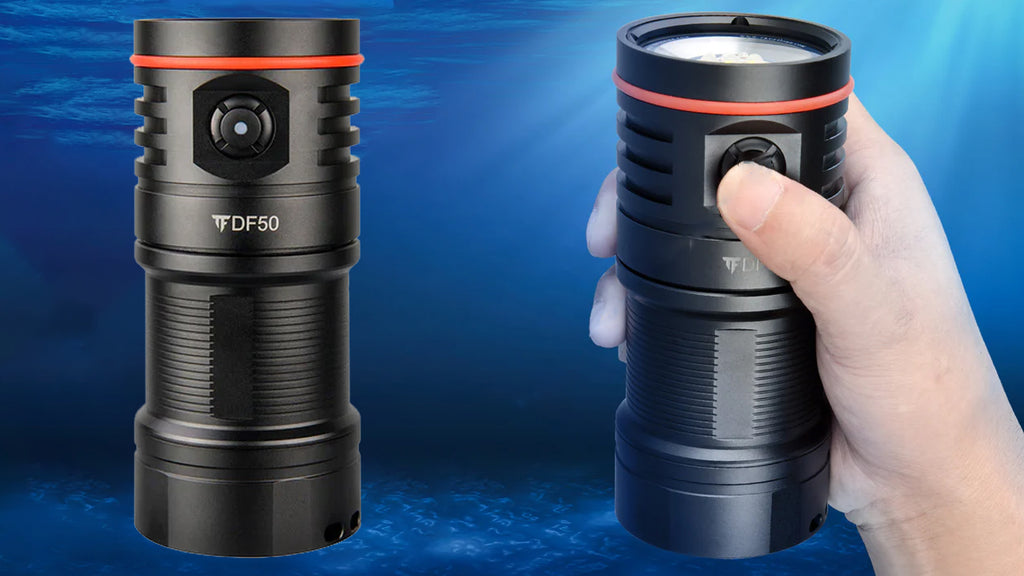 DF50 is a diving flashlight especially for scuba diving.cave diving , free diving and other underwater sports lighting