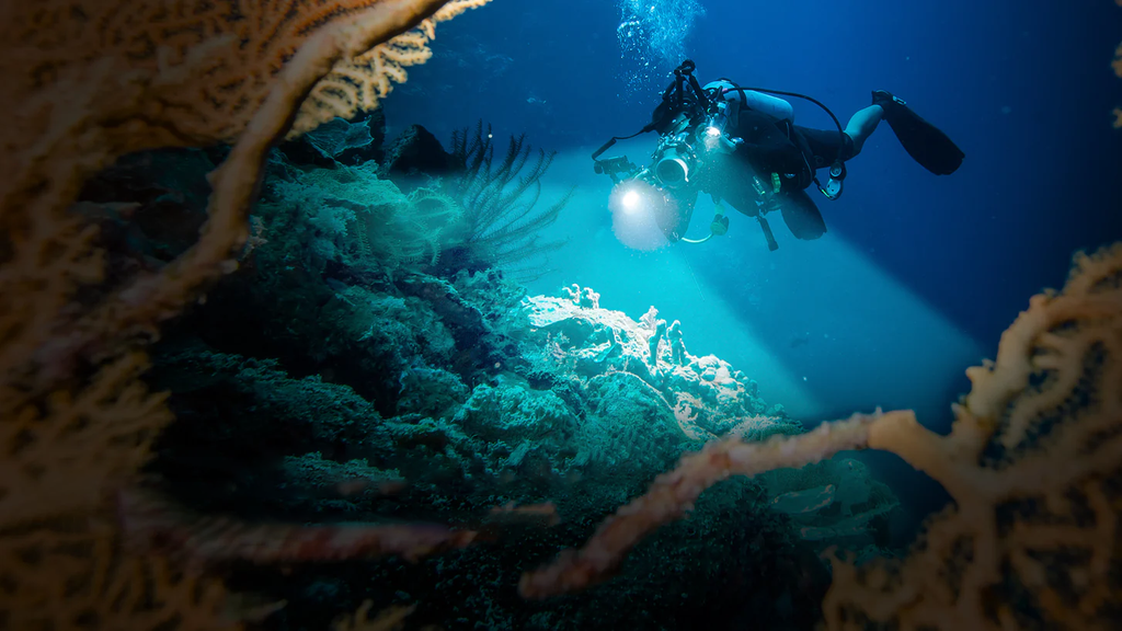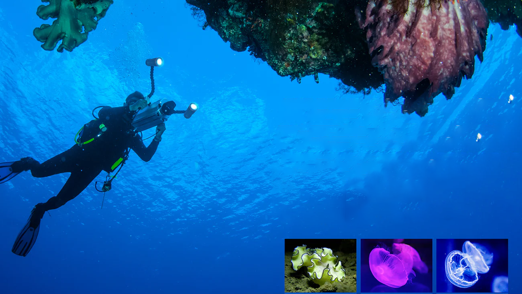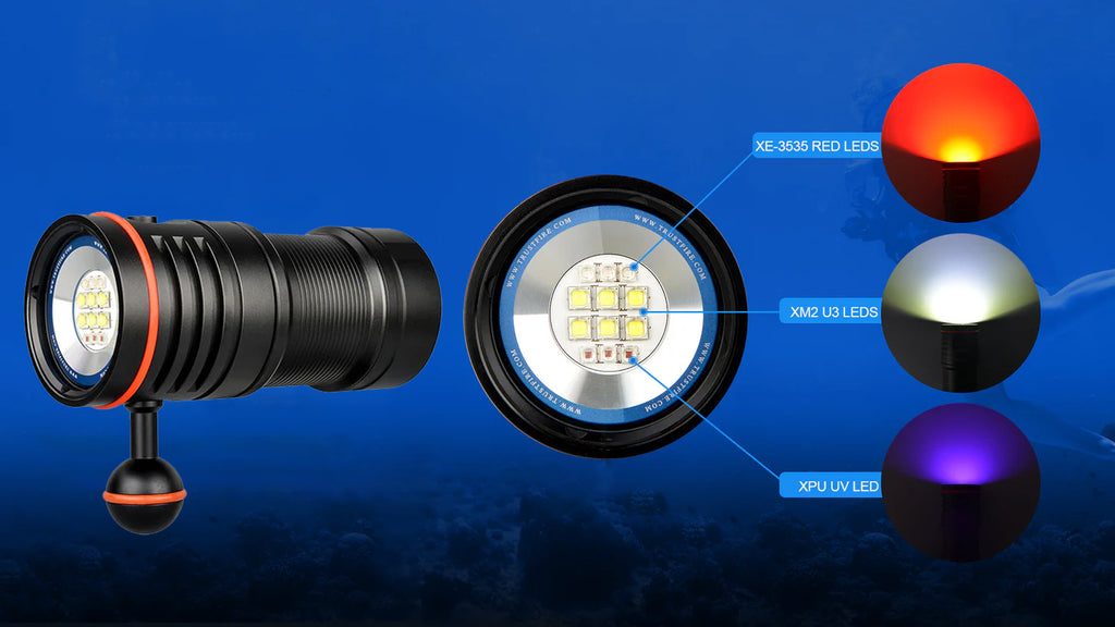 DF50 adopts three different LED light sources and one-button neck shape design :The three light sources are: ultraviolet light,red light, white light, exploring the sea world interest,discovering the mysteries of the ocean.