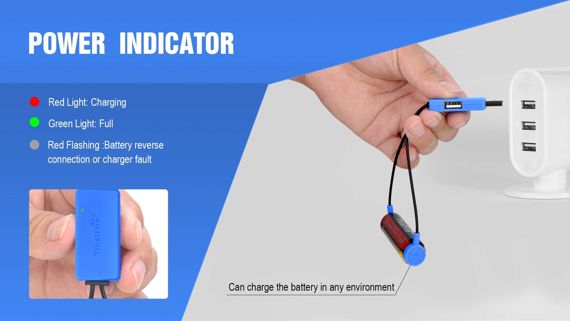 Note: After charging, please remove the battery in time, because the power indicator will consume power slightly.