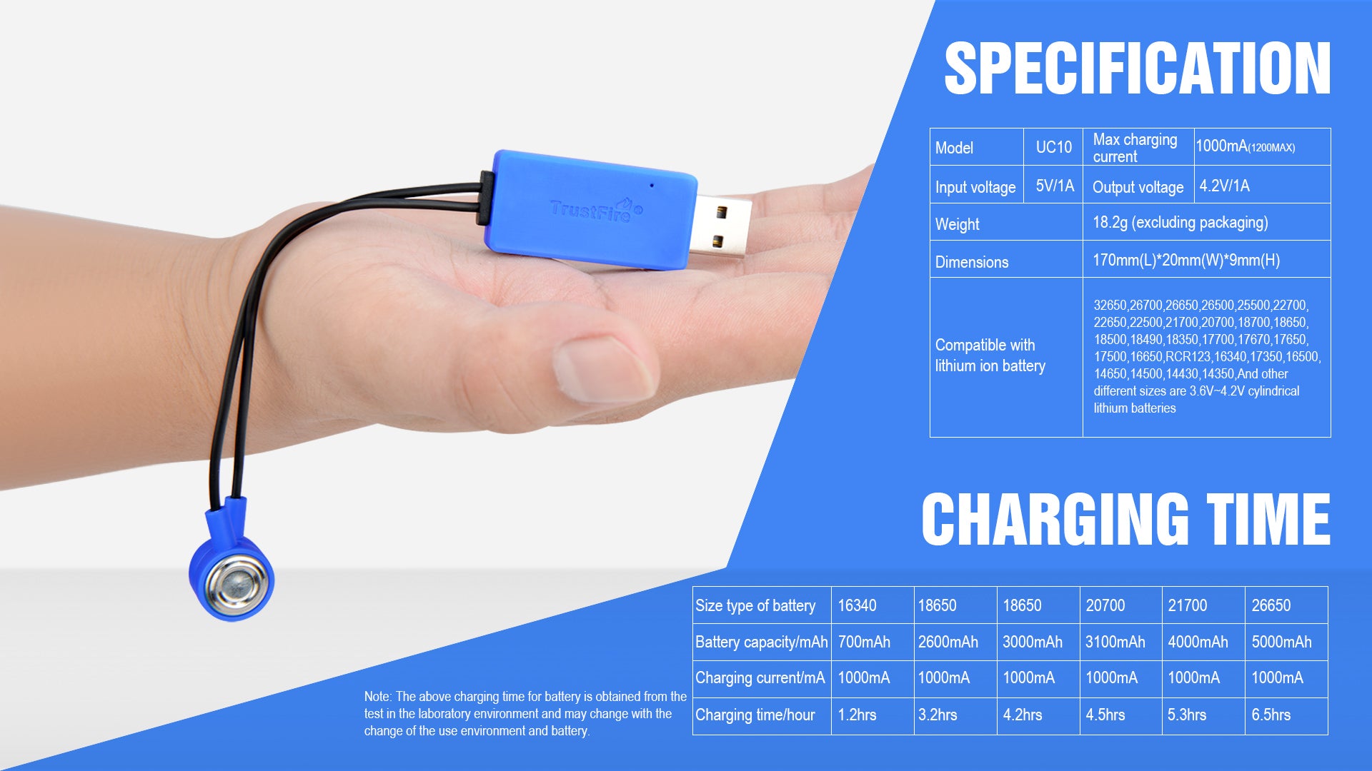 It can charge various lithium-ion batteries with voltages ranging from 3.6V to 4.2V for 32650,26700,26650,26500,25500,22700,22650,22500,21700,20700,18700,18650,18500,18490,18350, 17700,17670,17650,17500,16650,RCR123, 16340, 17350,16500,14650,14500,14430,14350 and other sizes.